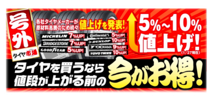 夏も冬も関係なくすべてのタイヤが値上げをします。