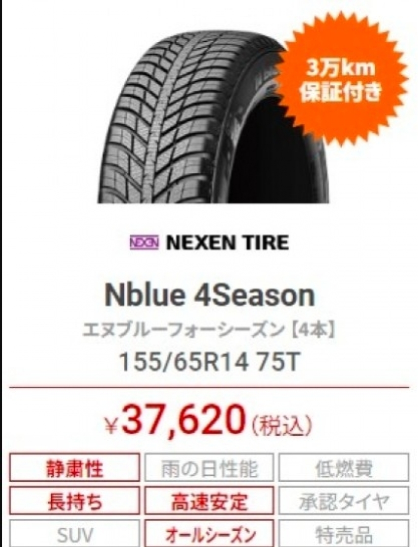 今回紹介するタイヤは(155/65R14)ネクセン オールシーズンタイヤになります!!