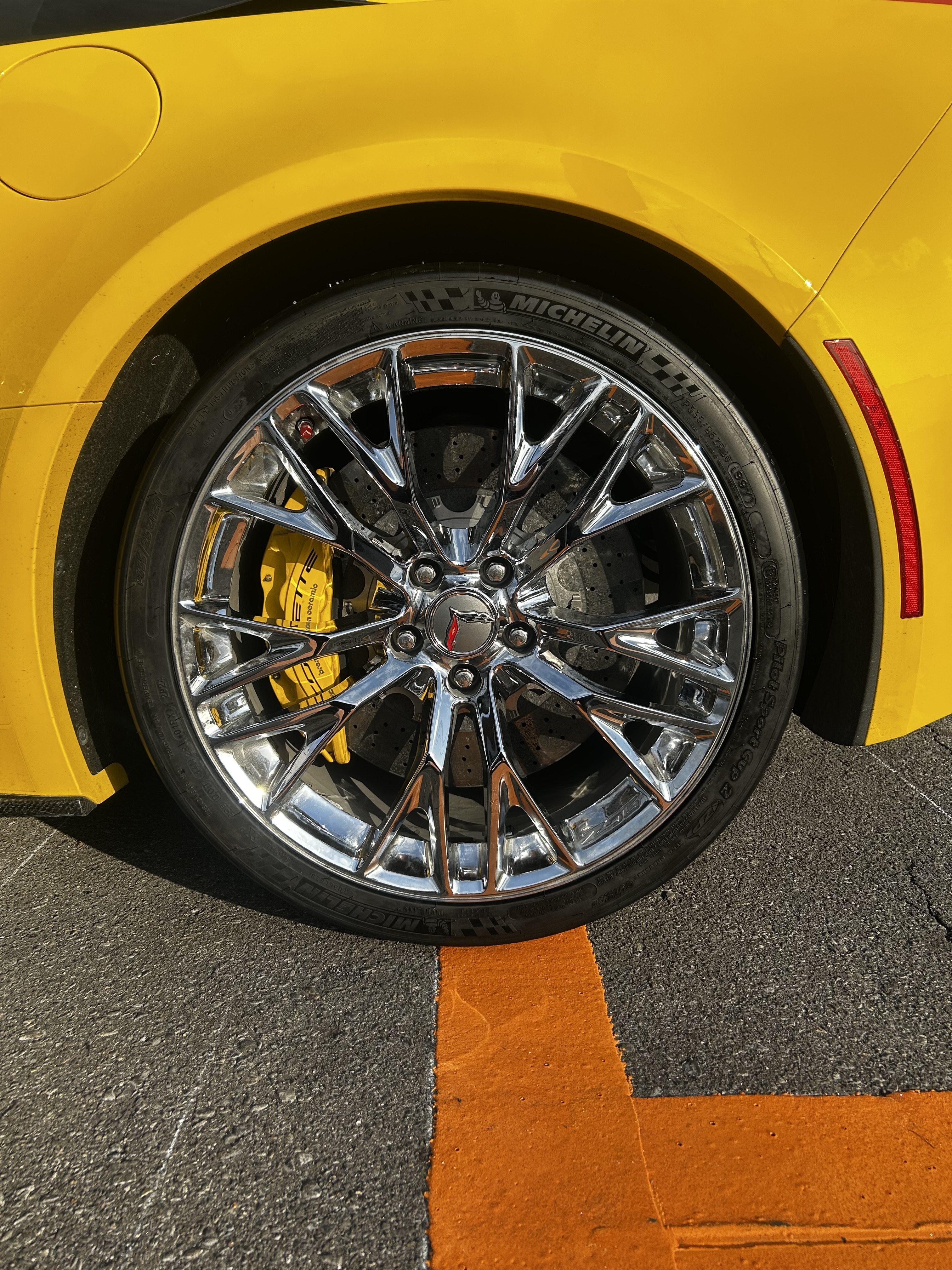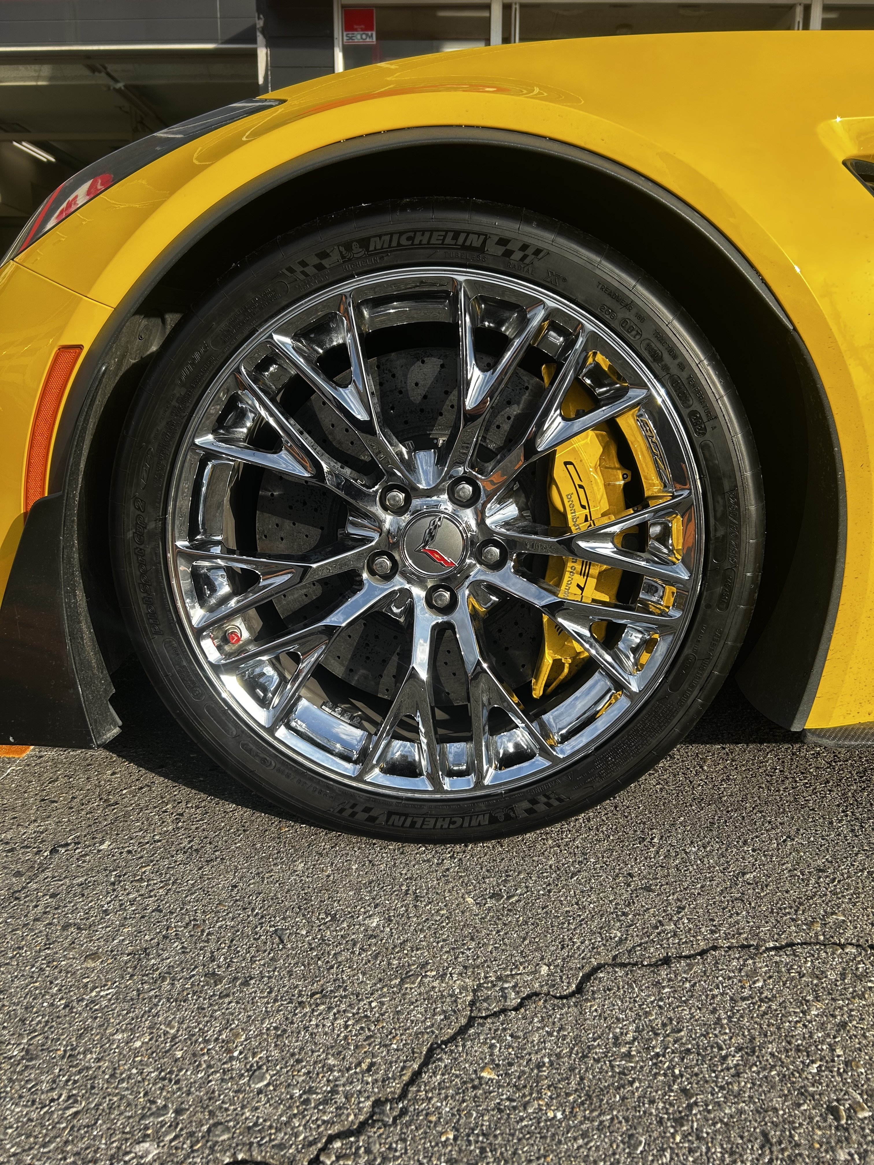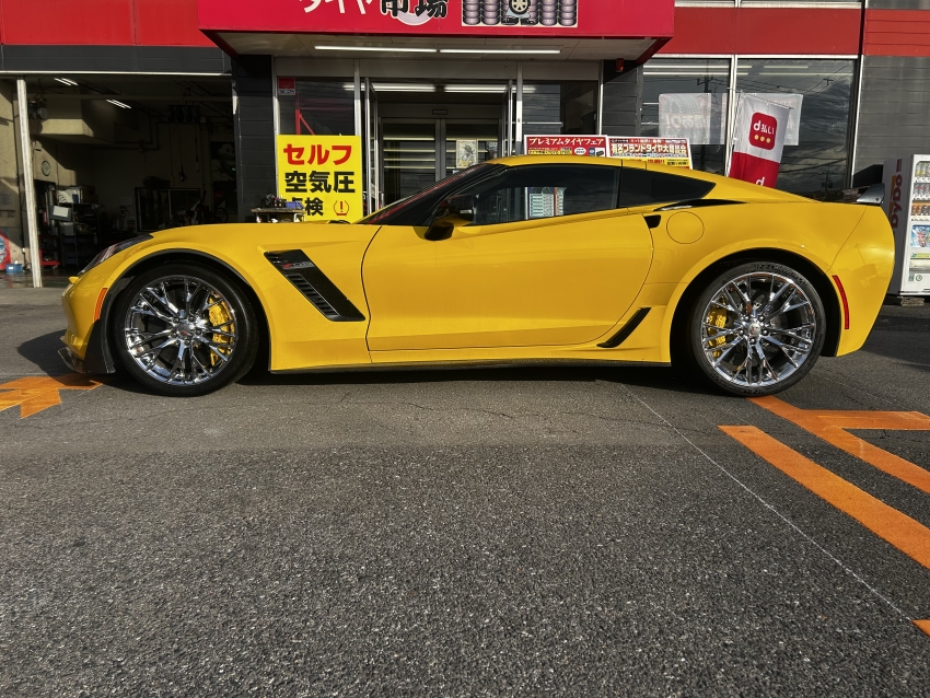 シボレー コルベットにランフラットタイヤお取り付け致しました!ミシュランのパイロットスポーツカップ2前後異形サイズで285/30R19&335/25R20 ご一緒にアライメント調整も行いました(*^▽^*)当店ではランフラットタイヤのお取り付け可能!輸入車のタイヤのお取り付け可能!輸入車のアライメント調整可能!