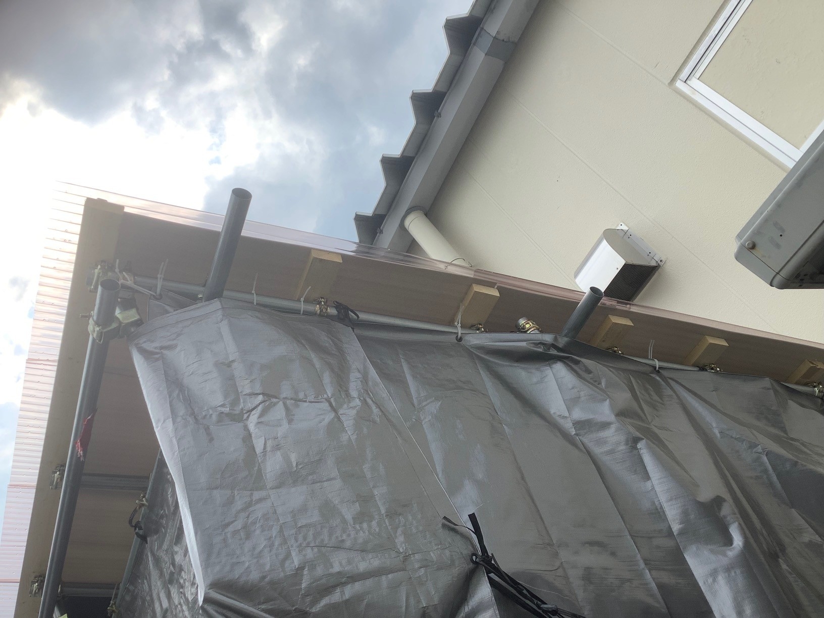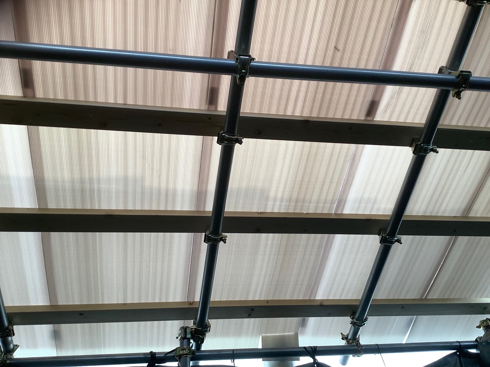 垂木と波板の間にダンプレートを挟んで固定しました(通常ダンプレートは挟みません)。